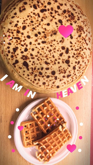 Auf dieses Bild seht ihr wie groß diese Pfannkuchen wirklich sind und wie gut sie aussehen. Darum habe ich für meine Story auf Instagram geschrieben: “ich bin in dem Himmel.” 😊