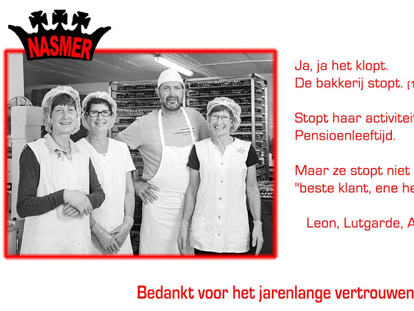 Entre-temps, Nasmer Gaufrerie a finalement fermé ses portes. Cette entreprise familiale est située à Hoeselt. C’est un sentiment extraordinaire de savoir que nos amis et notre famille ont mangé les dernières gaufres de cette entreprise. Enfin, je voudrais les remercier pour les délicieuses gaufres.